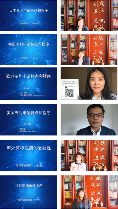 本次活動以八個(gè)獨(dú)立的短視頻,宣傳“海外知識產(chǎn)權(quán)保護(hù)”的必要性、申請的特點(diǎn)以及申請途經(jīng)等。活動的主講人全部由海內(nèi)外具有多年知識產(chǎn)權(quán)從業(yè)經(jīng)驗(yàn)的專業(yè)人士擔(dān)任,其中大連東方專利代理有限責(zé)任公司的主講人包括海外留學(xué)歸國博士、擁有近二十年代理經(jīng)驗(yàn)的專利代理師及商標(biāo)代理人等;海外知識產(chǎn)權(quán)專家則具有多國知識產(chǎn)權(quán)服務(wù)經(jīng)驗(yàn),擅長跨國知識產(chǎn)權(quán)服務(wù)業(yè)務(wù)。其中,在海外為我們錄制《歐洲專利申請?zhí)攸c(diǎn)和程序》的趙潔女士是歐洲專利律師、美國專利代理師,具有中國專利代理師資格,在歐洲、美國、和中國都有長期的工作經(jīng)驗(yàn)。同樣在海外為我們錄制《美國專利申請?zhí)攸c(diǎn)和程序》的薛之揚(yáng)博士是美國律師和專利代理師,是中國科學(xué)院知識產(chǎn)權(quán)培訓(xùn)班外籍講員。